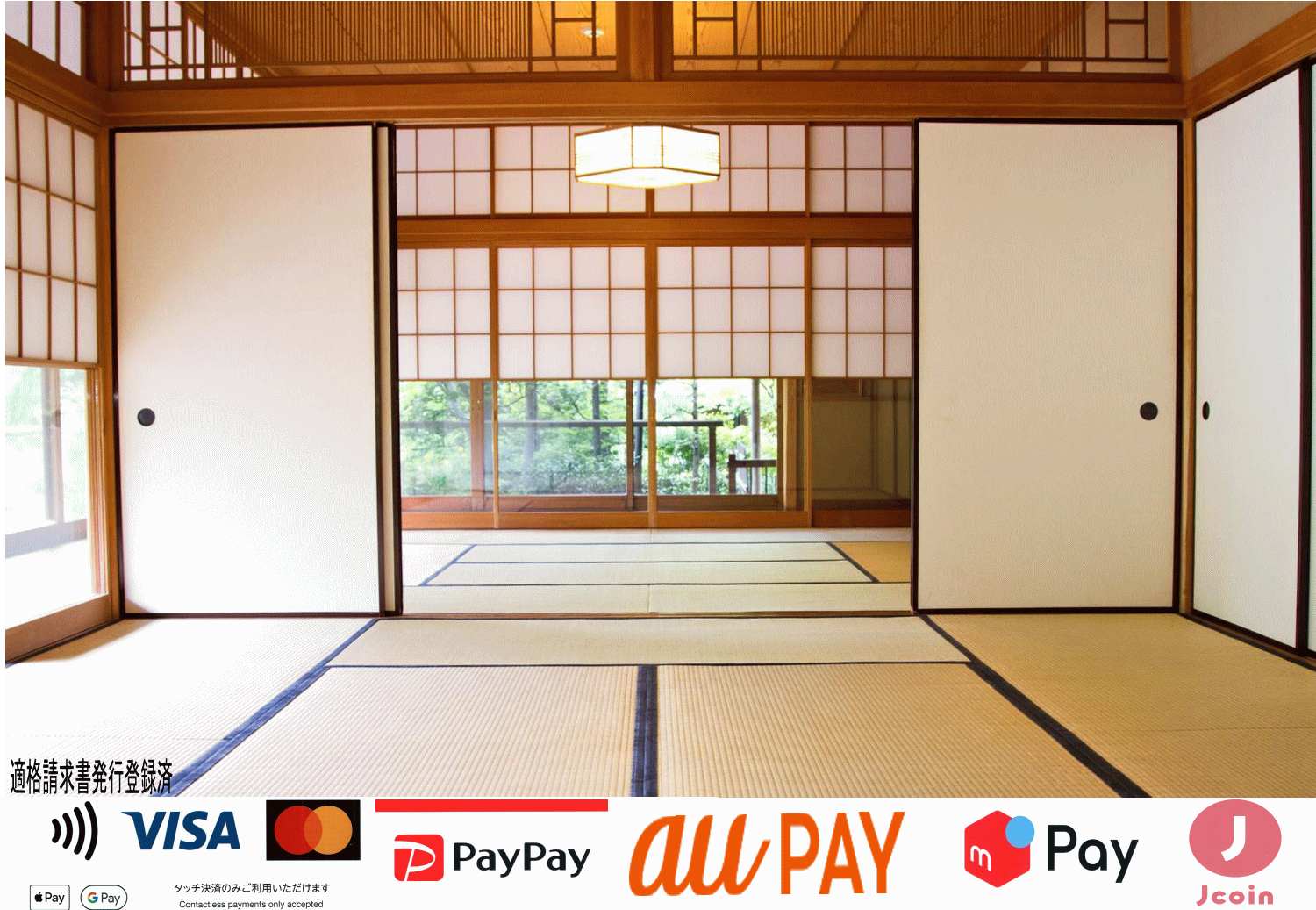 キャシュレスのお支払方法としてクレジットカード決済{stera tap}としてVISA・マスターの※タッチ決済のみご利用いただけます、又はQR決済〔スマホ決済アプリ〕のpaypay・auPAY・メルペイ・d払・J-conがご利用が可能です。